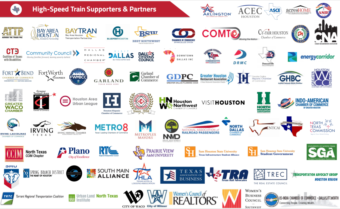 Texans from across the state are excited about having this fast, safe and reliable choice connecting half the state’s population. This support comes not just from the desire to ride the train, but also the jobs, economic development and clean alternative it provides.